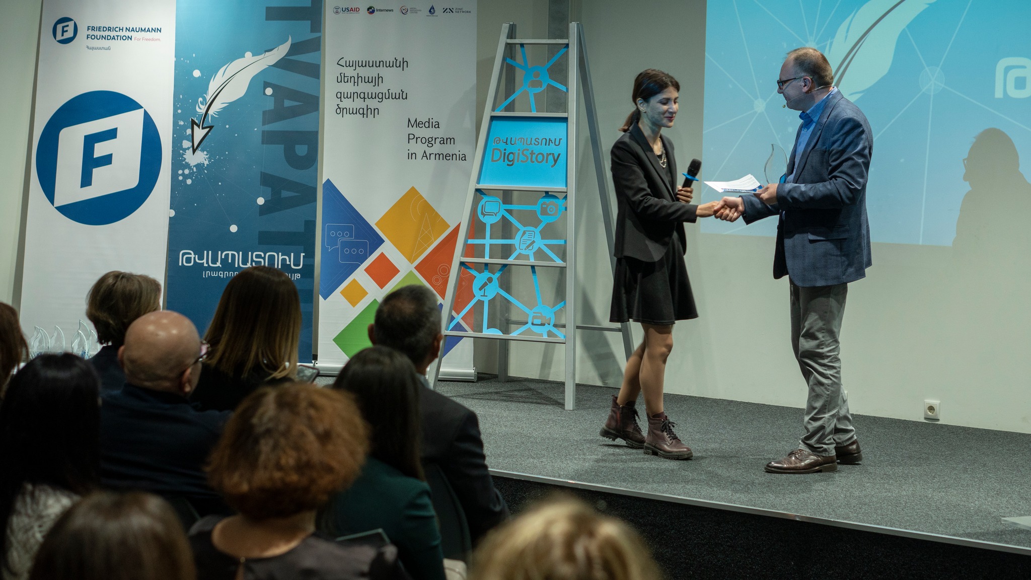 Մեդիա 3.0 տեխնոլոգիաների լավագույն կիրառման անվանակարգում հաղթող ճանաչվեց և 250․000 դրամով պարգևատրվեց «Ամփոփի» լրագրող Կարինե Դարբինյանը՝ «Երկրակեր երկնաքեր Երևան» շարքի համար։